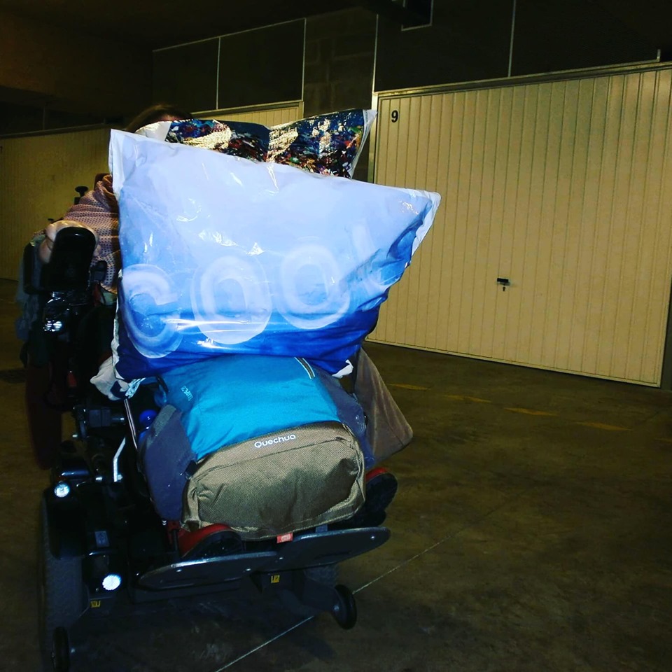 « Le tram ne passant plus sur ma portion de ligne jusqu’au 25 août et toutes mes auxiliaires ne conduisant pas le véhicule, l’été s’annonce (très) long ! Alors quand j’ai une auxi qui conduit, toute sortie est bonne à prendre, même les moins passionnantes 😊 ! Aujourd’hui, c’était mission courses avec une auxiliaire que j’adore ! Vous reconnaîtrez que d’avoir une myopathe dans ses connaissances, c’est quand même hyper cool pour porter les courses !